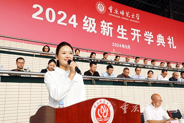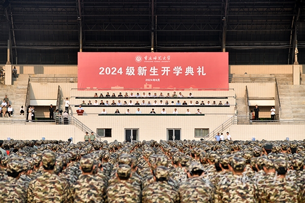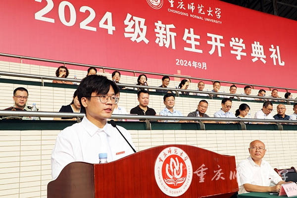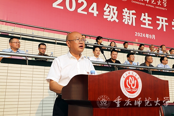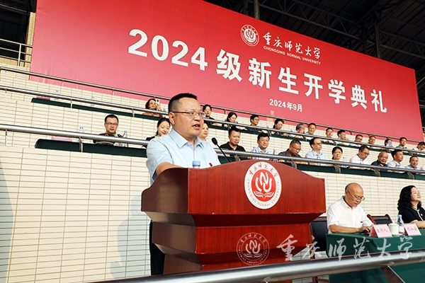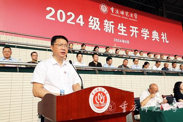 党委副书记、校长王国胤作题为《时代的召唤 青春的奔赴》的讲话,向加入重师大家庭的9069名新生同学表示热烈欢迎和诚挚祝贺。他谈到,对历史最好的继承就是创造新的历史,对重师精神最好的传承就是接过接力棒,不断弘扬和践行。