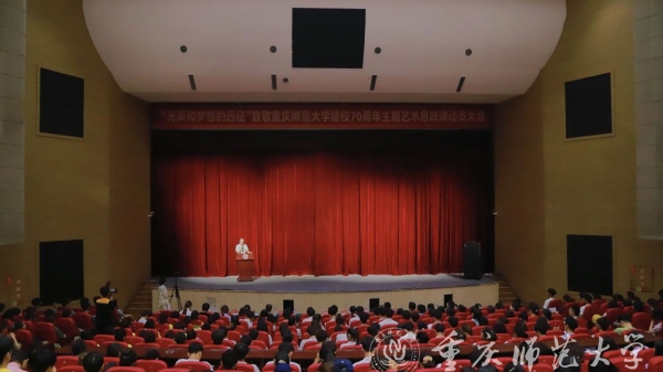 9月20日,bat365官方官网建校70周年主题艺术思政课动员大会在校友会堂演出厅举行。学校党委副书记陈志军出席会议,全体工作人员和演职人员参加会议。