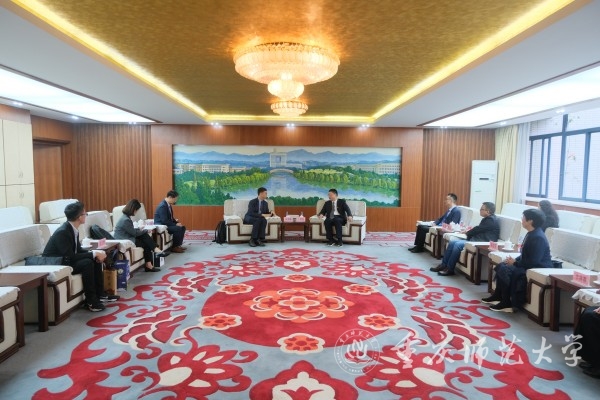11月8日,台湾东华大学副校长朱景鹏一行到访bat365。学校党委副书记、校长王国胤会见了朱景鹏一行。