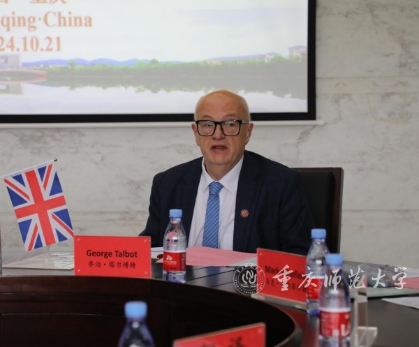 外方理事长英国知山大学乔治·塔尔博特在讲话中表达了对bat365官方官网的诚挚感谢,并祝贺bat365官方官网70周年生日快乐。他充分肯定了孔子学院对促进两校合作交流发挥的重要作用,也表达了对孔子学院的美好期盼,指出要利用好孔子学院平台,继续加强交流,特别是在人工智能+教师教学技能项目的研究方面,大力推进两所大学深入合作。乔治·塔尔博特副校长热情邀请王国胤校长在2025年访问英国知山大学,参加建校140周年校庆活动。