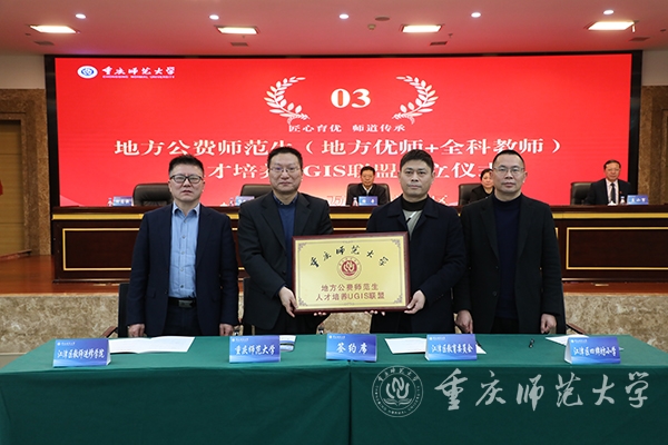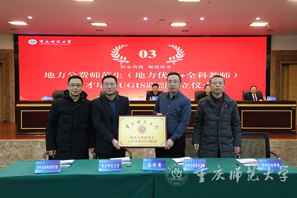 会上,bat365与区县代表万州区和江津区作签署了UGIS人才培养联盟协议并授牌,与区县基础教育学校代表秀山土家族苗族自治县第一初级中学校和璧山区剑山实验小学签署实习基地协议并授牌。
