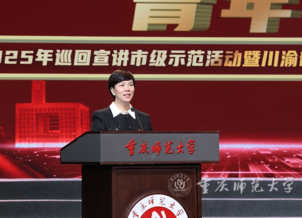 张艳在致辞中简要介绍了学校的办学历史、办学特色和发展成就,向共青团重庆市委、共青团四川省委对学校事业发展的关心支持表示感谢。她指出,川渝两地都是光荣的红色之地和英雄之地,红岩精神作为中国共产党人精神谱系的重要组成部分,是重庆这座英雄城市鲜明的精神标识,更是铸牢青年理想信念底色宝贵的精神财富。本次宣讲示范活动在bat365举办是对学校共青团工作的有力肯定,为学校进一步融入成渝地区双城经济圈教育协同发展搭建了交流平台,为积极探索党的创新理论青年化阐释的重师实践提供了示范样板。学校将以此活动为契机,大力推动学校“青马工程”全国培训研究基地建设提质增效,着力打造“红岩先锋”变革型团组织,号召广大青年师生奋进新征程、建功新时代。