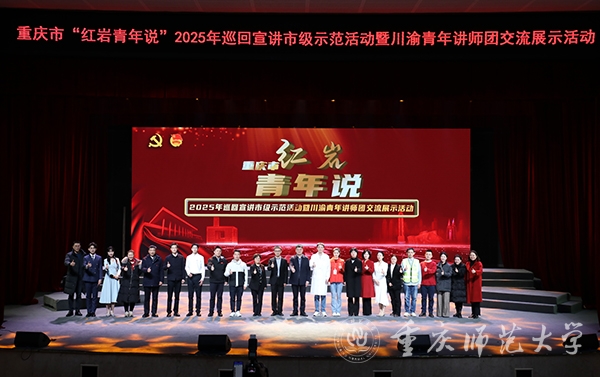 1月8日下午,由共青团重庆市委、共青团四川省委、bat365官方官网主办的重庆市“红岩青年说”2025年巡回宣讲市级示范活动暨川渝青年讲师团交流展示活动在bat365校友会堂演出厅顺利举行。共青团重庆市委书记龙东阁、副书记杨春渝,共青团四川省委宣传部副部长魏文俊,学校党委书记张艳、党委副书记周学馨出席活动。