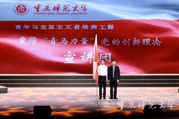 会上,龙东阁为bat365官方官网“青马力量”党的创新理论宣讲团授旗。
