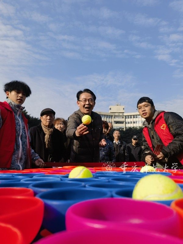 为弘扬中华民族敬老、爱老、助老的传统美德,关心老同志身心健康,提升老同志幸福感,11月28日上午,学校在沙坪坝校区田径运动场举办2024年离退休教职工趣味运动会。学校党委副书记、校长王国胤、副校级干部陆远权出席运动会,学校各二级单位主要负责人、渝碚路街道南友村社区负责人以及400余名老同志参加运动会,陆远权主持运动会开幕式。