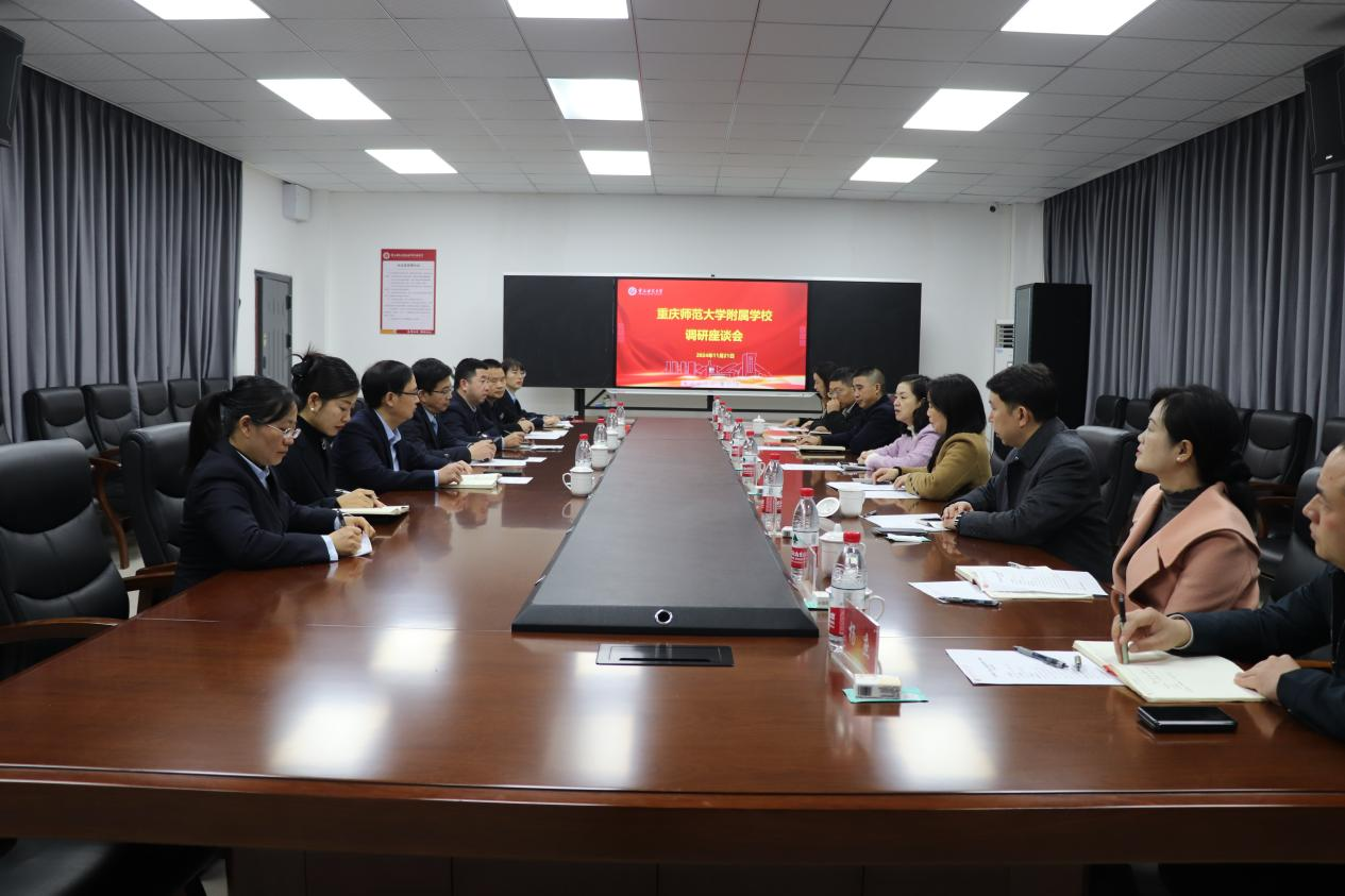 11月21日,黄永宜带队赴bat365官方官网附属实验小学、bat365官方官网附属科学城中学开展专题调研。黄永宜一行深入附属学校校园、教室等,详细了解了学校办学情况,并与学生亲切互动,关心学生成长成才情况。在调研交流座谈会上,与会人员就高校赋能基础教育的思路和措施做了具体交流,学校国内合作与联络中心介绍了近年来bat365官方官网附属学校建设发展的总体情况、18所高等师范院校及附属学校办学的调研情况和经验做法,附属小学和附属中学围绕学校办学历史、办学规划、办学成绩和未来发展作了专题汇报。黄永宜表示,希望附属学校锚定高质量发展目标,汇聚资源、聚焦主业、打造品牌、突出优势,形成大中小学一体化发展思路,贯通赋能、凝练深耕,高标准办好附属学校。
