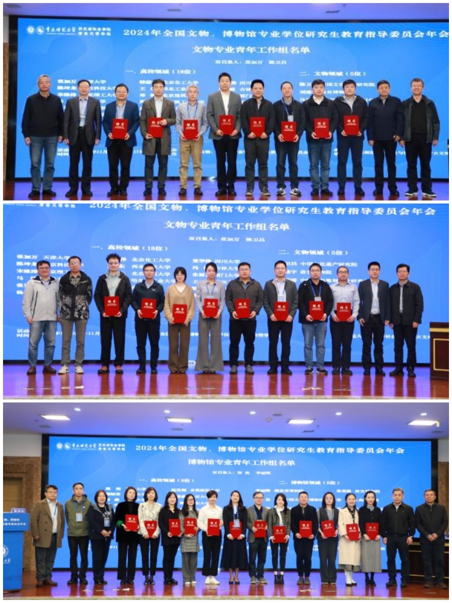 年会还首次组建了青年工作组会议。会上,23位文物专业青年工作组成员和15名博物馆专业青年工作组成员被授予聘书,张加万、陈卫昌、郑奕、李丽辉四位召集人分别代表两个青年工作组发言。罗静在讲话中指出,青年人才是国家战略人才力量的源头活水,要给予文博领域青年专家学者更多信任,支持青年人才挑大梁,赋予人才培养任务,着力开展案例教学体系研究、案例库建设、核心课程指南编制工作,强化产教融合协同育人机制研究,开展培养单位与文博机构的长效合作机制研究。希望青年工作组成员加强与国内外相关高校和文博机构联系,组织开展学术交流活动,向培养单位、文物机构推荐优秀成果和优秀人才。相信在国家文物局支持下,在文博教指委指导下,青年工作组的工作必将逐渐成形成势,在文物、博物馆专业学位教育质量建设方面发挥更加重要的作用。