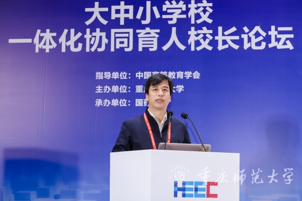 蔡理在致辞中指出,新时代,新质生产力发展需求对人才培养提出了新的挑战和机遇,大中小学校一体化协同育人是应对这一挑战的关键所在。要立足全局,着眼长远,做好顶层设计,明晰育人路径;要秉持开放合作的理念,整合校内外资源,优化育人环境;要勇于探索,敢于突破,深化机制创新,推动持续发展。他强调,要把大中小学校一体化协同育人工作融入教育强国、教育强市建设的伟大使命中去,为建成教育强国和谱写中国式现代化重庆篇章作出新的更大贡献。