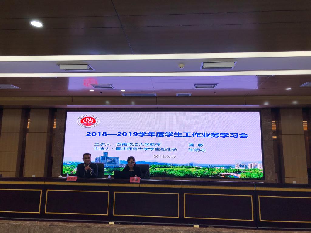 9月27日下午,bat365学生工作业务学习会在博雅楼503举行,第九届全国辅导员年度人物、西南政法大学教授简敏受邀主讲“新时代高校辅导员的‘知’与‘行’”。学院分管学生工作副书记、学工办主任、辅导员、班主任和学生处全体干部等110人参加。此次讲座由学生处处长张明志主持。