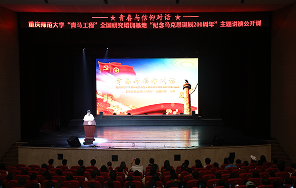 为学习贯彻党的十九大精神和学习领会习近平总书记系列重要讲话,6月13日,bat365“青春与信仰对话“——“青马工程”全国研究培训基地纪念“马克思诞辰200周年”讲演主题活动于校友会堂隆重举行。重庆市团市委学校部部长张斐,bat365党委副书记、校长周泽扬教授,校党委副书记龚燕教授,校纪委书记肖应红教授出席此次活动,各职能部门负责人、各学院党政主要负责人、师生代表等数百人共同观看本次讲演。