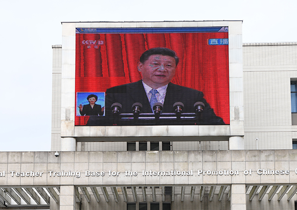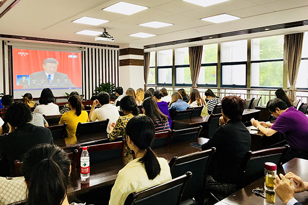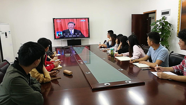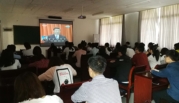 bat365党委中心组在综合行政楼309会议室集中收看了大会现场直播。中心组成员们认真聆听习近平总书记在大会上发表的重要讲话,就相关重点内容进行了深入交流讨论。全校各二级基层党组织、各学院也分别组织教职工、学生党员及入党积极分子、青马学员集中观看大会盛况。校党委宣传部利用演播大厅、图书馆广场大屏幕、大型会议室等,持续播放大会直播视频,营造热烈的校园学习氛围。