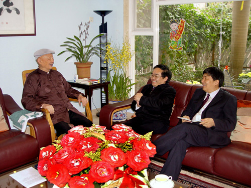 2005年2月12日,时任党委书记傅世放、现任校长周泽扬前往邓垦家中拜望 |