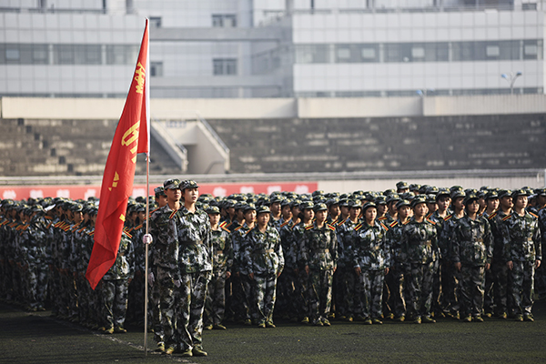 三是,希望大家不负初心,砥砺前行。周校长指出,大学生活不再是高中单调的三点一线,学习不再如高中只有唯一的答案,遇到的困惑会越来越多,面临的压力会越来越大。希望大家保持定力,不管外界噪音多大,都不要忘了为什么出发;无论遇到什么挫折与困难,都不要放弃砥砺前行的勇气。周校长还以今年奥运会上中国女排时隔12年后再次夺冠为例,勉励同学们继续保持不怕“苦心志、劳筋骨、晒体肤”的军训精神,迎难而上,拿出精气神,洒四年辛勤之汗水,搏终身无悔之青春!