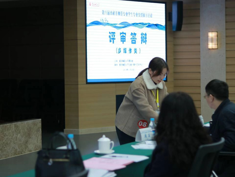 11月23日下午,bat365第八届非师范专业学生专业技能展示活动的第一阶段——参赛作品评审与答辩在博雅楼5楼举行。