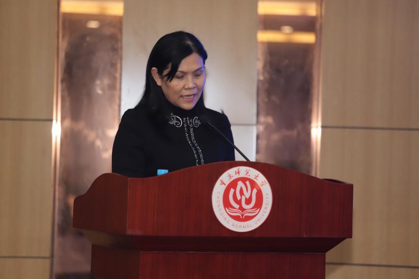 会议伊始,校党委副书记龚燕教授代表校方致辞。她首先对到场的媒体、嘉宾、老师同学表示了热烈的欢迎,对各界对本次大赛的支持表示衷心的感谢。龚副书记表示,本次大赛契合bat365“大学与行业结合、课堂与业界融合”的办学理念和创新人才培养模式。她谈到,为积极顺应形势发展变化,bat365联合北京时间碎片新媒体文化有限公司联合举办了国内首家新媒体学院,与中共重庆市委宣传部合作建立了重庆新闻学院。此次大赛是大学与行业结合的良好交流机会,能激发大学生创作热情,提升创作水平,对促进学界与业界、高校与高校、高校与企业的交流合作,培养新时代的影视专门人才具有重要意义。龚副书记还提及历届大赛中bat365同学的参赛情况,并表示学校将积极配合大赛组委会做好承办工作。