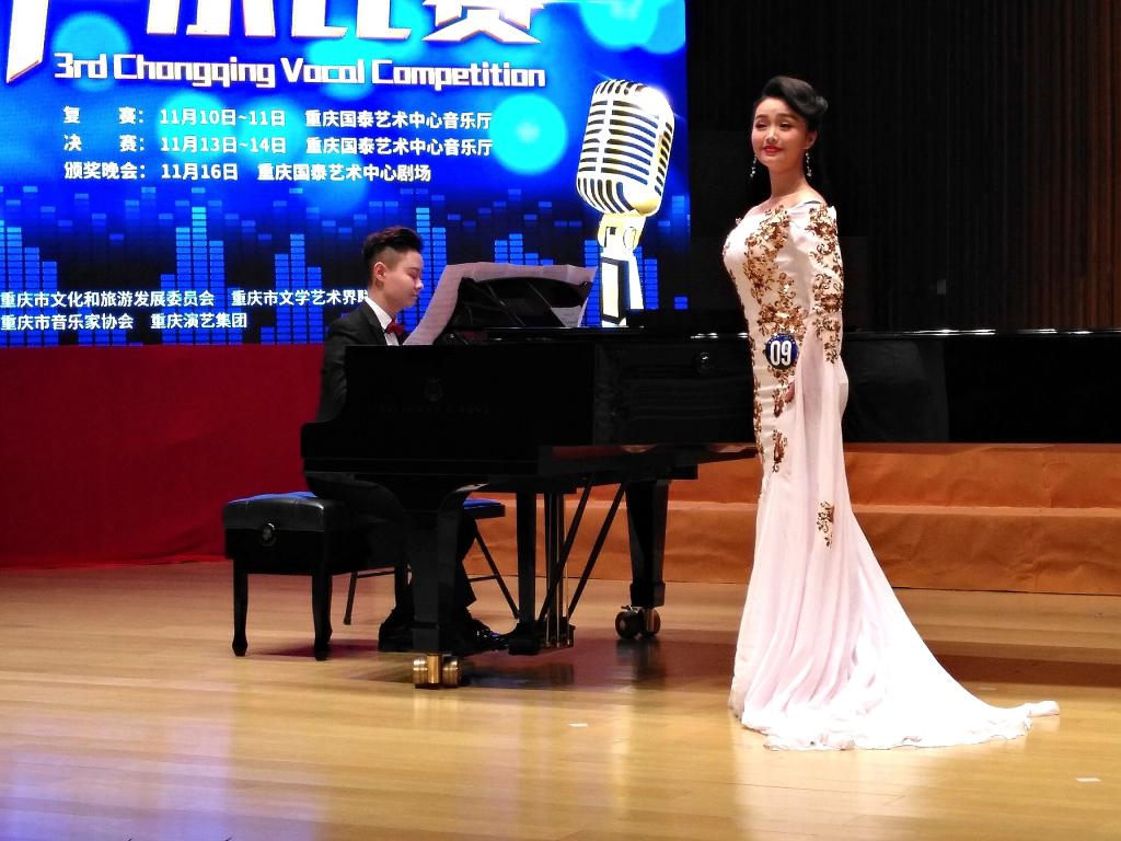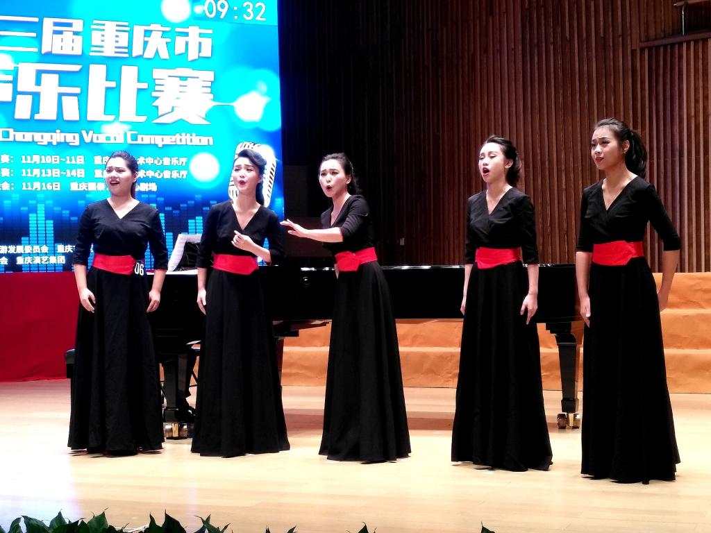 11月16日晚,在重庆市国泰艺术中心举行了重庆市第三届声乐大赛颁奖晚会。此次比赛共吸引全市及区县有关单位共229位选手(团队)参加,分为美声组、民族组、流行演唱组、合唱组4个组别。经过初赛、复赛,最终各组别选出10位选手(团队)进入决赛,竞争十分激烈。本次比赛设一等奖一名、二等奖三名、三等奖六名。bat365音乐学院共9位选手(团队)进入决赛,并在比赛中荣获佳绩,同时音乐学院荣获优秀组织奖。师生获奖名单如下: