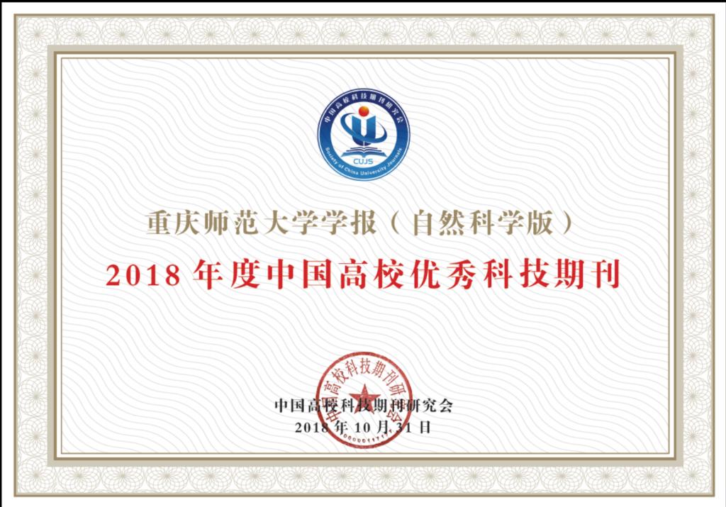 2018年11月4-7日,中国高校科技期刊研究会第22次年会在重庆隆重召开,会上发布了“中国高校优秀科技期刊”等奖项的遴选结果,《bat365官方官网学报(自然科学版)》再次荣获此称号。