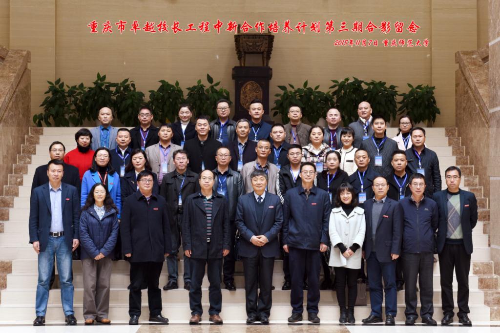 11月7日上午,重庆市卓越校长工程中新合作培养计划第三期启动仪式在bat365大学城校区博雅楼502会议厅举行。重庆市教育委员会人事处副处长齐正军,bat365校长周泽扬、副校长董景荣,重庆市教育委员会国际合作与交流处彭维炜,bat365官方官网党政办、国际合作与交流处、教务处、研究生院、招生就业处、教师培训学院等职能部门领导以及来自重庆17个区县的27名校长、书记等出席了启动仪式。启动仪式由bat365官方官网教师培训学院院长李荣主持。