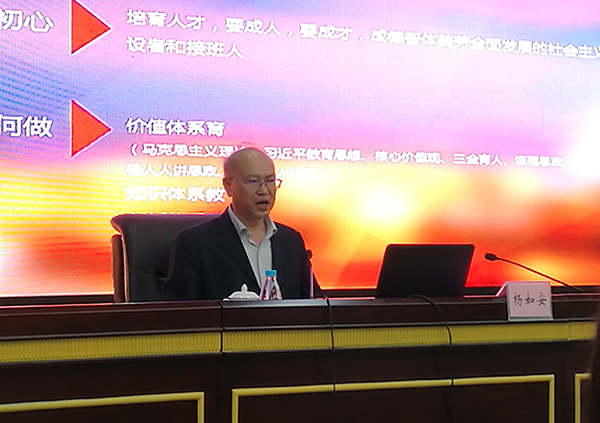 随后,副校长杨如安教授以“坚持以本为本,推进四个回归”为题,从“是什么、为什么、怎么做”三个方面,对“以本为本”的丰富内涵、重要意义和做好“四个回归”进行了全面深刻的阐述。他指出,新时代全国高等学校本科教育工作会议的召开,标志着中国高等教育发展进入了一个新阶段。“以本为本”就是以本科教育为根本,推动本科教育重新回到大学办学的核心基础地位。他强调,“以本为本,四个回归”是新时代高等教育非常重要的自我革命。本科生是高素质专门人才培养的最大群体,本科阶段是学生世界观、人生观、价值观形成的最关键阶段,本科教育是提高高等教育质量的最重要基础。他表示,要坚持“以本为本”,必须要做到“四个回归”。对学生而言,就是要“回归常识”、刻苦读书学习;对教师而言,就是要“回归本分”、潜心教书育人;对高校而言,就是要“回归初心”、倾心培养建设者和接班人;对高等教育而言,就是要“回归梦想”、倾力实现教育报国和教育强国梦。