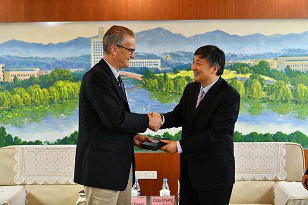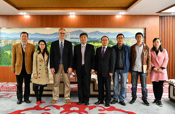 10月25日下午,美国亨德森州立大学(Henderson State University)副校长Dr. Brett Powell、国际学生中心主任、商学院副教授徐叙、中教国际教育交流中心项目副总监刘法群一行到访bat365。bat365校长周泽扬会见了代表团一行,国际处和美术学院相关负责人参加了会谈。