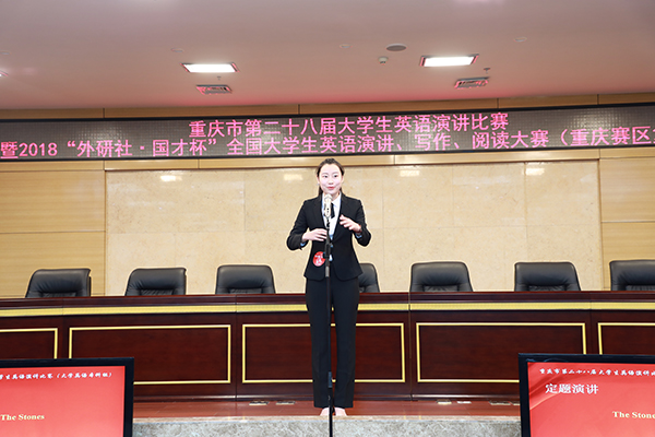 本次大赛共举行五场演讲比赛、一场在线阅读比赛和一场在线写作比赛,共有204名来自市内高校的学生参加了各项比赛角逐。在当天的比赛中,bat365外国语学院翻译专业马敏静同学凭借优异的表现同时荣获“重庆市第二十八届大学生英语演讲比赛”(英语专业本科组)特等奖和“2018‘外研社·国才杯’全国英语演讲大赛”重庆赛区复赛特等奖,并将代表重庆市高校参加于北京举行的全国总决赛。