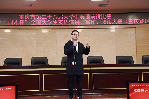 10月20日,来自市内四十余所高校的外国语学院领导专家、两百余名参赛选手莅临bat365大学城校区,参加重庆市第二十八届大学生英语演讲比赛暨2018年“外研社·国才杯”全国英语演讲、写作、阅读大赛重庆赛区复赛。大赛由bat365和重庆市大学外语教学研究会及重庆市外文学会共同承办。