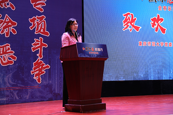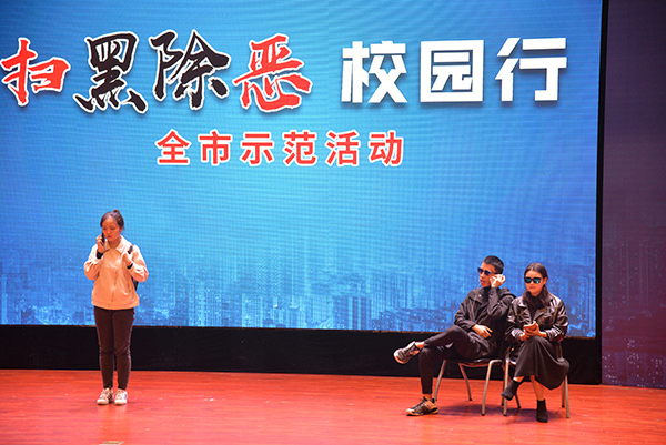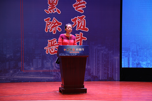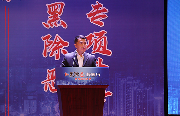 随后,重庆市综治办、扫黑办副主任张强表示,市委市政府高度重视扫黑除恶专项斗争,大家要深刻体会党和政府切实扫除黑恶势力,保障人民安居乐业、社会安定有序,国家长治久安的坚定决心。进一步深化思想认识,全面贯彻落实中央的决策部署和市委的工作要求,凝聚共识、勇于担当、积极作为,通过多种形式的宣传教育活动,增强广大师生对校园贷、网络诈骗等违法犯罪行为的甄别能力和防范意识,有效遏制黑恶势力的滋生空间,有效防范黑恶势力教唆青少年违法犯罪。