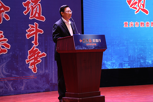 人民网重庆频道副总编辑、重庆发布执行总编辑曹阳在仪式上介绍了本次活动在新媒体运用方面的创新,同时呼吁同学们利用互联网平台进行更好的宣传。重庆市教委教育工委、市教委专职督学邓沁泉强调要引导广大学生深入进行社会主义核心价值观,汇聚家庭、学校和社会的强大合力,并提出各学校要抓住时机,精心组织的具体要求。