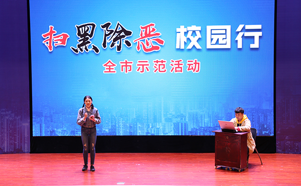 为深入贯彻党的十九大精神和习近平总书记重要指示,切实推进校园扫黑除恶专项斗争,有效防范黑恶势力侵害校园,10月18日上午,由重庆市教育委员会、中共重庆市委政法委员会、共青团重庆市委员会、重庆市人力资源和社会保障局主办,人民网重庆频道、重庆发布与bat365联合承办的“扫黑除恶校园行”全市示范活动在校友会堂音乐厅举行。