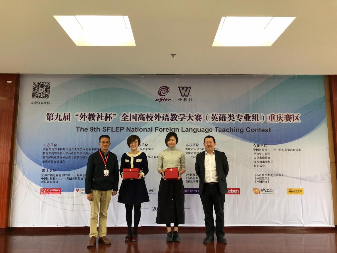 10月13-14日,第九届“外教社杯”全国高校外语教学大赛(英语类专业组)重庆赛区复赛及决赛于西南大学外国语学院举行。bat365外国语学院青年教师刁玉老师表现突出,荣获重庆赛区“英语类专业组”决赛一等奖。