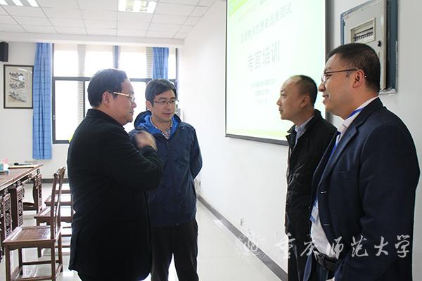22日下午,考官与考务助理培训工作会召开之前,受孟东方校长委托,副校长陆远权来到国家汉办汉语国际推广师资培训基地(重庆),与国家汉办督考、考官和考务人员等亲切交流,感谢国家汉办对bat365汉推工作的大力支持,也感谢各位老师们来到bat365官方官网考点担任考官,并嘱咐bat365工作人员要按照国家汉办要求认真做好各项工作。国家汉办官员也真诚感谢bat365的高度重视和精心组织,称赞bat365准备工作一直规范有序,热情周到,注重细节,服务质量好,考官满意度高。
