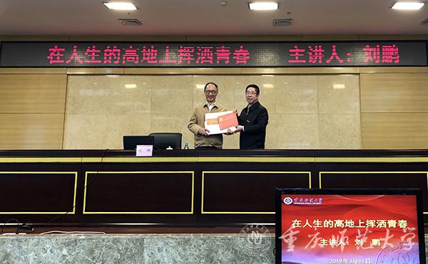 最后,孟东方校长将30年前刘鹏局长亲手为其所著的《高等学校共青团工作概览表》一书作序的影印件和《高等学校共青团工作概览表》一书赠予刘鹏局长。与会师生共同用热烈的掌声记录了这带有深厚感情和历史记忆的时刻。