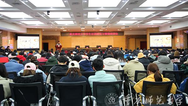 3月7日下午,校党委宣传部、保卫部、校团委联合举办的学生社团建设与管理培训会在博雅楼504会议厅举行,校党委宣传部部长毛宇、副部长徐赤、保卫处副处长方敏,以及学生社团指导教师、社团学生骨干近300人参加。会议由校团委书记毛霞主持。