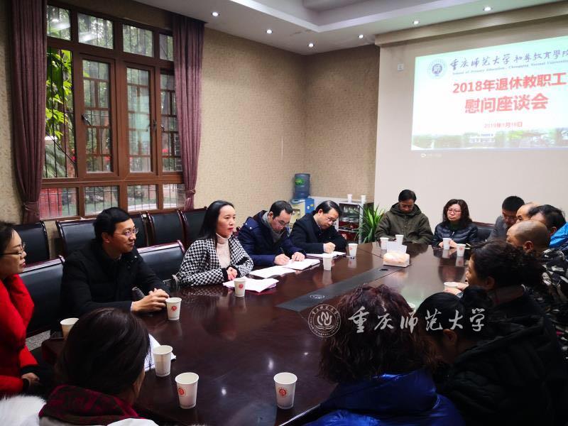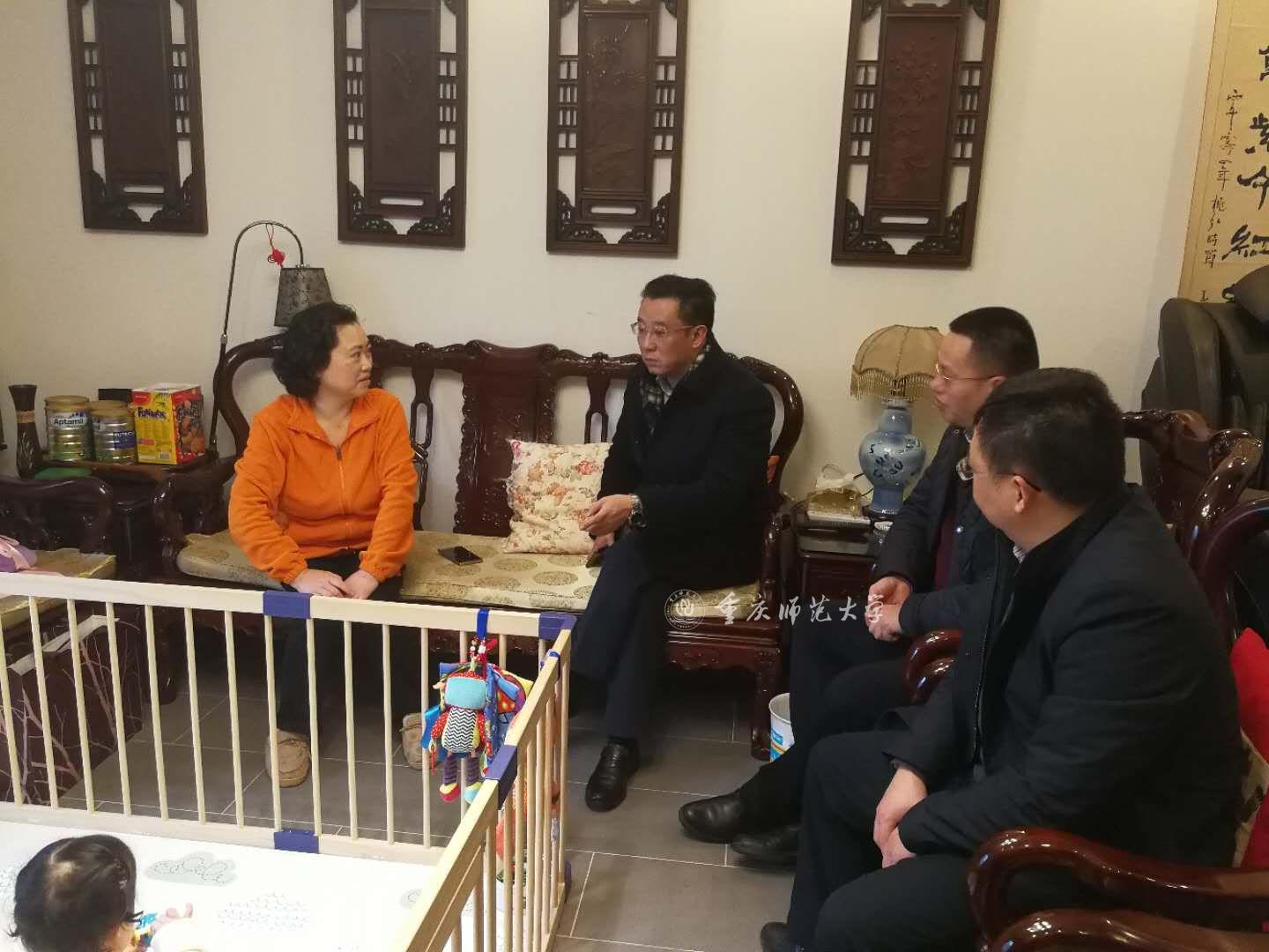 春节前夕看望慰问当年离退休老同志一直是bat365尊老敬老的优良传统,本次看望慰问共分为大学城校区、沙坪坝校区、北碚校区和校外片区四个小组。各小组根据实际情况,采取逐一走访或召开座谈会的方式,仔细询问老同志身体状况和生活情况,通报2018年学校成为博士学位授予单位、本科教学评估效果显著、喜获国家自然科学二等奖、人才引培卓见成效、职工收入创历史新高等等大事喜事,衷心感谢他们为学校发展付出的辛勤劳动和所做重要贡献,认真听取老同志们的意见建议,希望他们继续关心支持学校发展,积极建言献策,共铸学校美好明天。