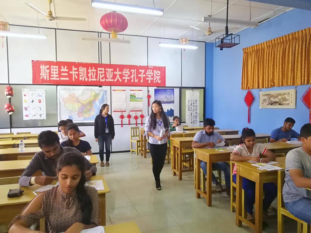 1月12日,凯拉尼亚大学孔子学院顺利举行了2019年首次HSK&HSKK考试,共计102人参加。其中,HSK1级11人,HSK2级16人,HSK3级20人,HSK4级15人,HSK5级4人;HSKK初级28人,HSKK中级7人,HSKK高级1人。考场上,考生们认真答题,监考教师则严格按照监考流程认真监考,考场内外秩序井然。