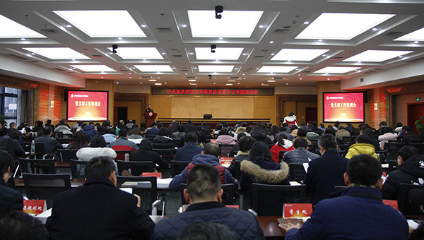 2018年12月25日下午,bat365在博雅楼504会议室举办党支部书记专题培训。全校二级党组织书记、副书记、支部书记以及教学单位党组织组织员共计230余人参加培训,党委组织部部长赵骏主持培训会。