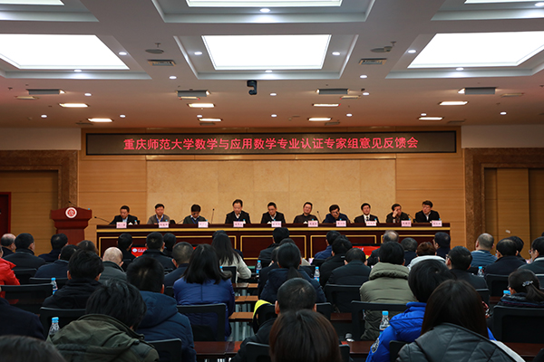 专业评估专家组全体成员、重庆市教委高等教育处处长蒋后强、市教委师范处副处长周建国、市师范专业认证专家委员会、市教育评估院等相关领导莅会。bat365校领导班子,党政办、教务处等主要职能部门负责人,各师范专业学院院长及书记,数学科学学院领导及全体教师参加本次会议。