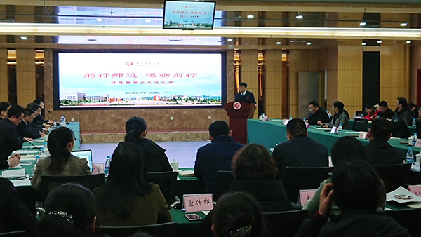 市教委师范处副处长周建国在会上表示,自国家启动师范专业认证以来,我市相关部门及师范类高校高度重视师范专业认证,以期达到以评促建、以评促改、以评促强的目的。与此同时,他也谈到师范专业的认证突出了专业发展的差距和不足。专家组组长、西南大学副校长陈时见就专业认证的目的、任务、理念及现场考察的必要性予以说明。他强调,专家组的各项成员一定会尊重标准,按照专业认证的新思路、新理念及新标准,做好现场考察的“打样”工作。
