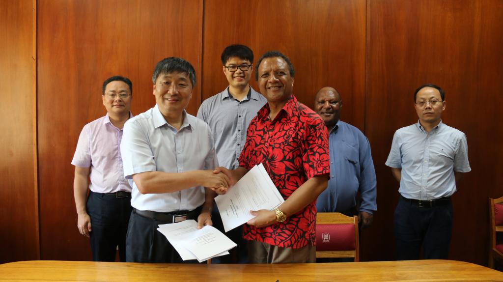 在巴布亚新内亚科技大学,bat365代表团与科大相关学科代表就开展两校之间多领域交流合作展开讨论,并就汉语教学、中国文化传播、科学技术、职业培训、巴中两国研究交流等方面达成共识。周泽扬校长和巴布亚新内亚科技大学代理校长Ocean Reagen代表双方签署了合作共建孔子学院协议。为切实推进新建孔子学院建设,代表团还参观考察了未来孔子学院办公、教学、教师住宿等场地,以及当地交通、购物、就医等情况,并就如何对接汉语学习与中华文化的实际需求,与当地华人华侨进行深入交流,取得许多共识。