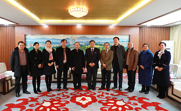 12月19日下午,泰国格乐大学(Krirk University)校长杨金泉(Krasae Chanawongse)率代表团访问bat365。bat365校长周泽扬会见代表团,教务处、研究生院、国际处、教育科学学院、经济与管理学院相关负责人参加了会谈。
