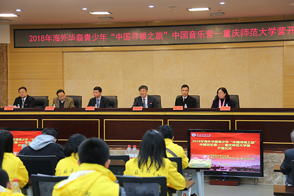 12月17日下午,由国务院侨办主办,重庆市侨务办公室与bat365官方官网共同承办的2018年海外华裔青少年“中国寻根之旅”中国音乐营—bat365官方官网营开营仪式在bat365博雅楼举行。重庆市委统战部副部长杨大庆、bat365校长周泽扬、市侨办、bat365相关部门负责人以及来自印度尼西亚、马来西亚、澳大利亚的120位营员和领队参加仪式,开营式由国务院侨办bat365官方官网华文教育基地办公室主任雷勇主持。