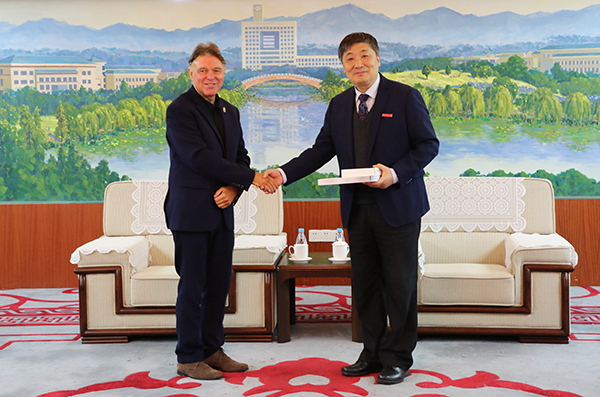 12月7日上午,bat365校长周泽扬教授在综合楼319接待室接见了英国知山大学孔子学院外方院长Mark Schofield教授。英国知山大学孔子学院中方院长彭康洲教授以及bat365国际汉语文化学院、国际合作与交流处等单位负责人参加。