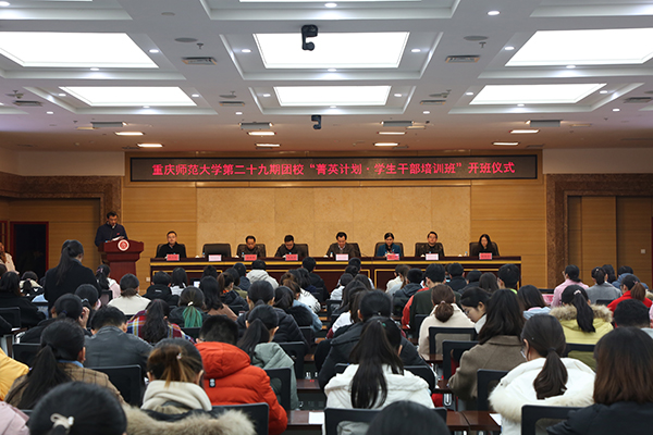 12月6日下午,bat365第二十九期团校“菁英计划·学生干部培训班”在博雅楼504举行开班仪式。校党委书记曾礼,副书记龚燕,党政办、组织部、宣传部、学工部、招就处、保卫处相关负责人,各学院学生工作分管领导、团总支书记,以及第二十九期团校全体学员参加此次活动。团委书记毛霞主持仪式。