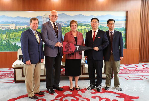 孟东方校长代表bat365官方官网欢迎美国特洛伊大学Hawkins校长、Tatum高级副校长、Sohail助理副校长一行3人。孟校长表示bat365官方官网长期坚持开放办学,在国际汉语教育上取得了重要成就,孔子学院基本遍布五大洲。去年底他担任bat365官方官网校长以来,高度重视孔子学院建设,高度重视与共建孔子学院的合作伙伴美国特洛伊大学的密切关系,将继续加大力度支持孔子学院发展。孟校长赞赏Hawkins校长多年来热爱中国文化,大力支持孔子学院,推进两校人文交流;称赞美国特洛伊大学孔子学院所取得的突出成绩和在美国南部的重要影响力。霍金斯校长表示,这是他第三次造访bat365官方官网,回顾bat365官方官网与特洛伊大学合办的特洛伊大学孔子学院的发展历程,两次获得孔子学院总部殊荣;感谢孔子学院团队为孔子学院的发展所做的贡献,希望两校加强交流合作,增进理解互信。孔子学院在两校共同努力下,未来更上一层楼。