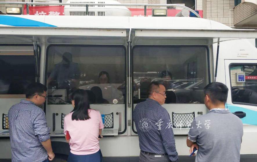 为更加优质高效地服务全校师生员工,6月13日,学校再次邀请重庆市交管局沙坪坝车管所走进bat365开展车驾管业务上门服务,为学校师生办理驾驶证补证换证、提交身体条件证明、违章查询及处理、摩托车注册登记、核发免检标志、信息变更、车管业务咨询等业务,让师生足不出校就能享受车驾管的贴心服务。