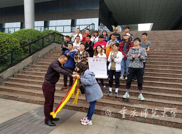 5月8日,綦江区教师刘勇、罗军代表綦江区教委,亲临bat365体育与健康学院,赠送锦旗和感谢信。