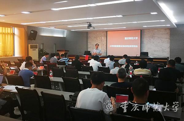 答辩会开始前,孙宇阳处长对项目库建设的意义和校内两次评审的情况作了介绍,他指出,实验室项目库的建设意义重大,是学校开启高水平综合型师范大学建设的关键内容之一,项目建设的思路必须与学校第三次党代会报告中提出的,正在制定的教学、科研五年行动计划相匹配,并对其形成良好的支撑。