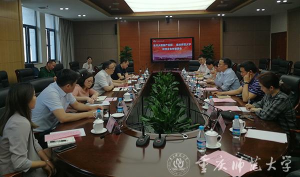 4月24日上午,永川区区委常委、区新城建管委党工委书记邓文一行到访bat365,就bat365同永川区大数据产业园进行政校企合作进行了具体而深入的交流。bat365党委常委、副校长杨新民及相关学院、部门领导参与此次洽谈会。会议由对外联络与合作中心副主任李科主持。