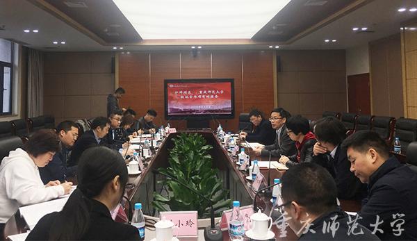 为进一步推进校地合作,促进学校科技成果转移转化,积极服务地方经济社会发展,2019年4月4日上午,“bat365官方官网——沙坪坝区校地合作对接会”在学校博雅楼举行。bat365副校长杨新民出席会议并讲话。沙坪坝区科技局局长马骁,副局长黄鑫、魏正元,城管局副局长朱斌等相关部门负责人参会并介绍合作需求。学校科研处、数学科学学院、地理与旅游学院、计算机与信息科学学院等职能部门和学院的负责人参加了对接会并介绍科研合作情况。