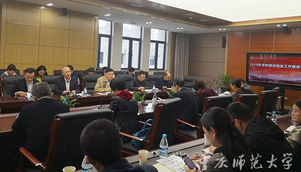 为落实就业优先政策,加强就业创业保障,2019年4月1日下午,在博雅楼501会议室学校召开了2019年就业创业推动会。会议由副校长杨如安主持,各学院就业工作领导小组组长、分管本科生和研究生就业工作领导、研究生院相关领导及招生就业处科级以上干部参加了会议。